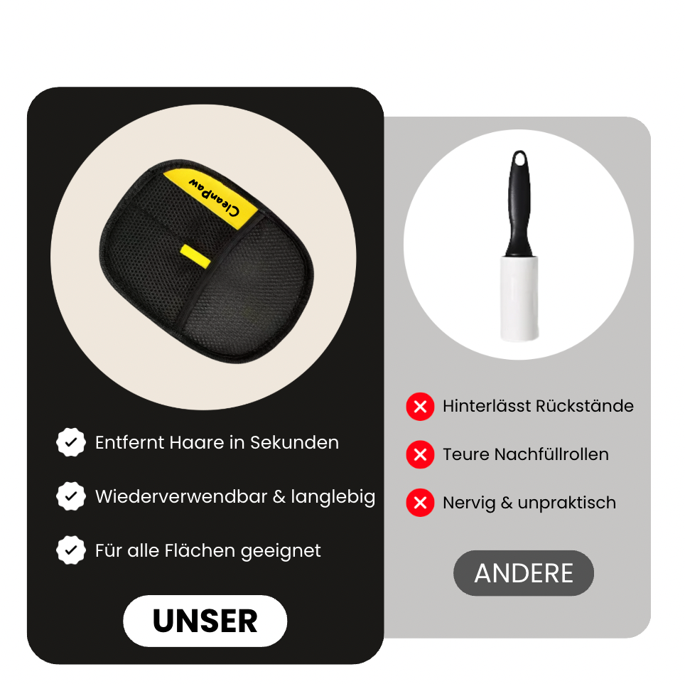 „Fusselrollen? Totaler Müll dagegen. CleanPaw nimmt die Haare sofort mit. Richtig gut.“